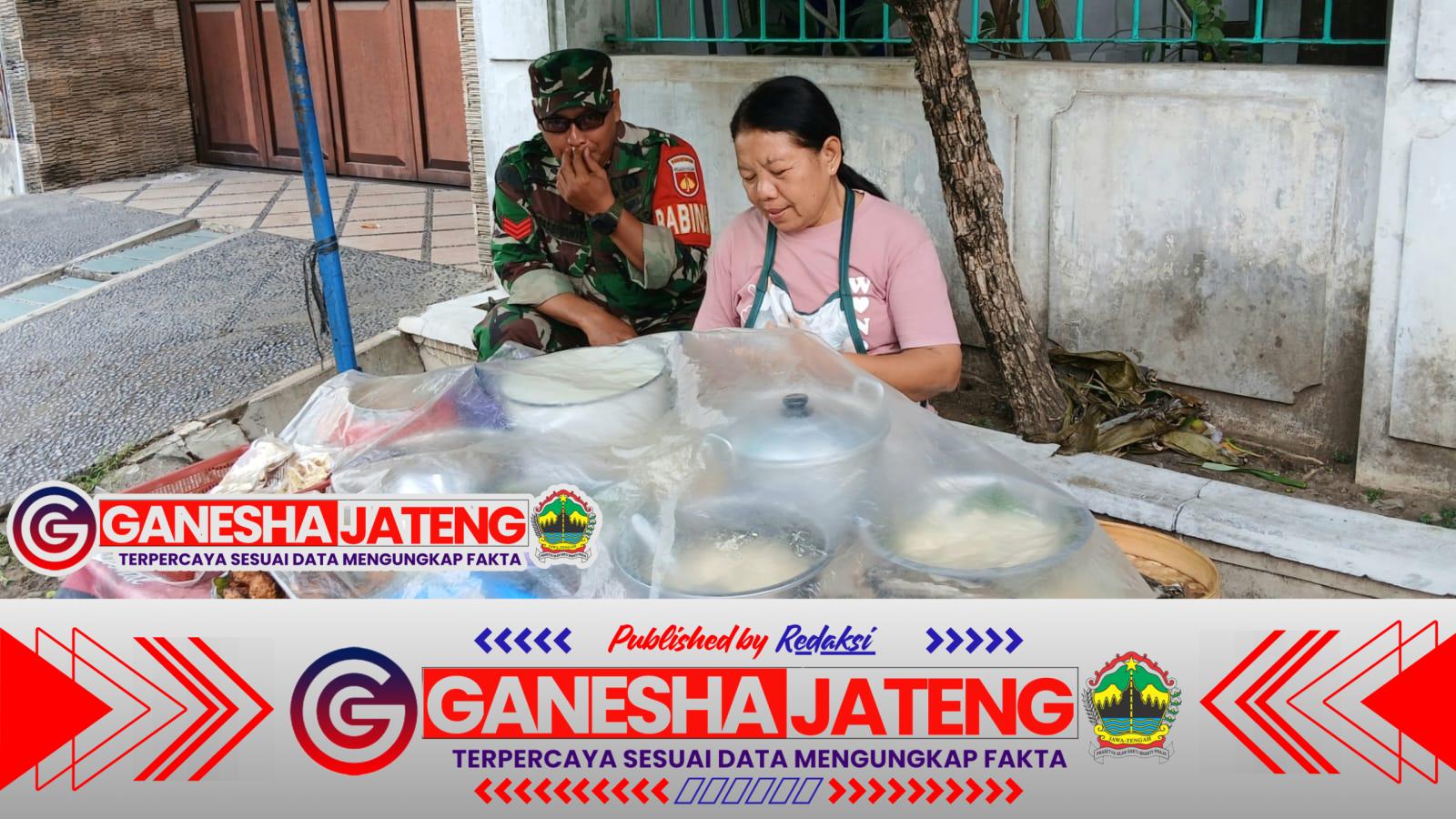 Surakarta Ganeshajateng.com Babinsa Kratonan Koramil 03/Serengan Kodim 0735/Surakarta Kopka Risbiyanto Pukul 09.00 wib melaksanakan Komsos dengan Ibu Rini Widyastuti sebagai pedagang makanan di Rt. 01/Rw. 05 Kratonan Serengan Kota Surakarta, (03 Oktober 2025)