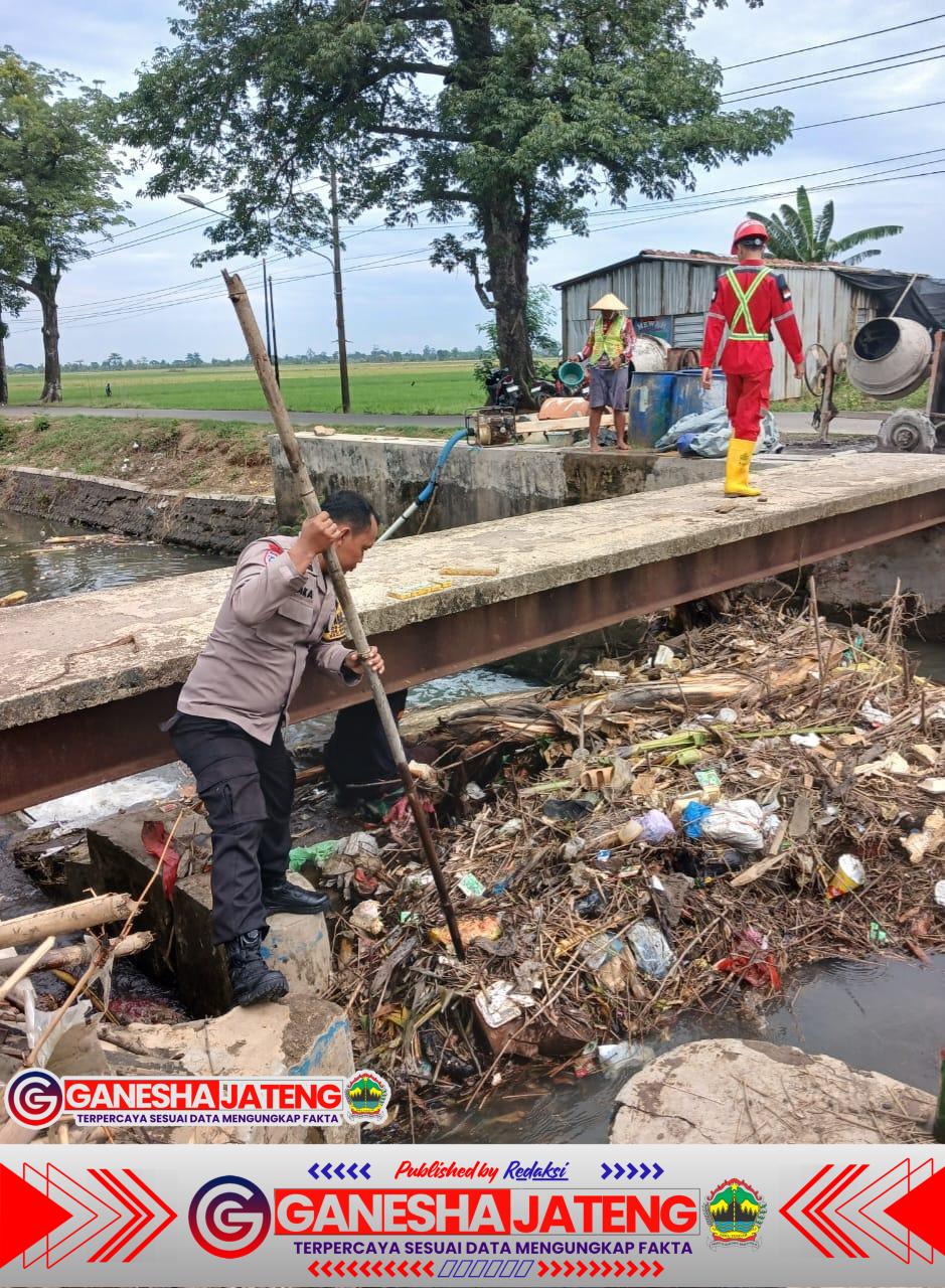 Cegah Meluap Saat Hujan Deras, Bhabinkamtibmas di Jepara Bersihkan Sungai Kaweden