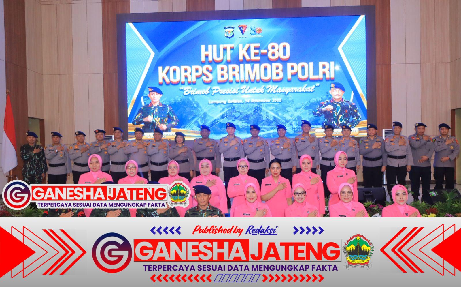 LAMPUNG – Kapolda Lampung Irjen Pol Helfi Assegaf bersama Wakapolda Brigjen Pol Sumarto menghadiri peringatan HUT ke-80 Korps Brimob Polri di Gedung Serba Guna (GSG) Polda Lampung, Jumat (14/11/25).