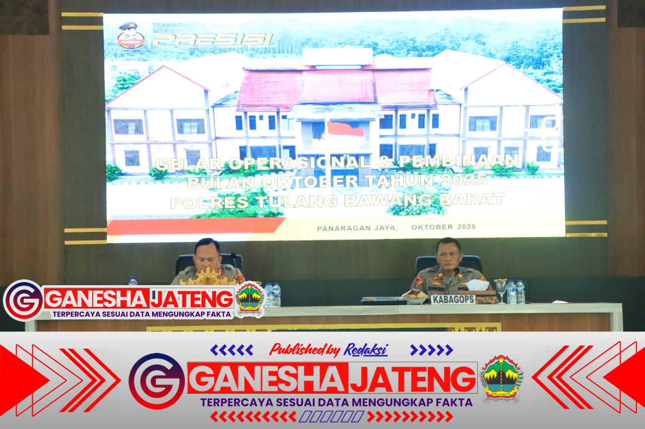 Tulang Bawang Barat — Kapolres Tubaba, Polda Lampung AKBP Sendi Antoni, S.I.K., M.I.K. didampingi Kabag Ops Akp Sainudin Pimpin Langsung pelaksanaan Gelar Operasional (GO) Bulanan Dan Anev Situasi Kamtibmas Bulan Oktober 2025 di aula Sarja Arya Racana Mapolres Tubaba, Selasa (28/10/2025) Pagi