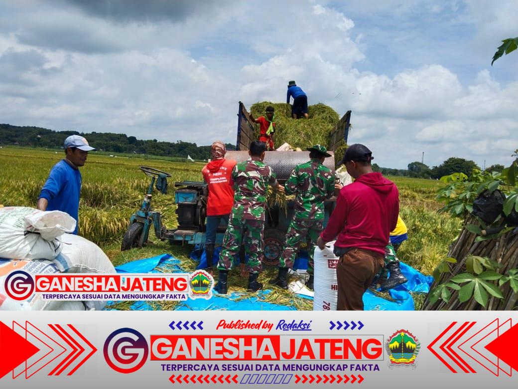 Sragen, Memasuki musim panen padi di wilayah binaan, Sertu Suparno Babinsa Desa Galeh Koramil 10/Tangen Kodim 0725/Sragen turut hadir di tengah-tengah para petani yang sedang melaksanakan kegiatan panen di area persawahan Dk.Barong RT 12 Ds. Galeh Kec. Tangen, Kamis (09/10/2025).