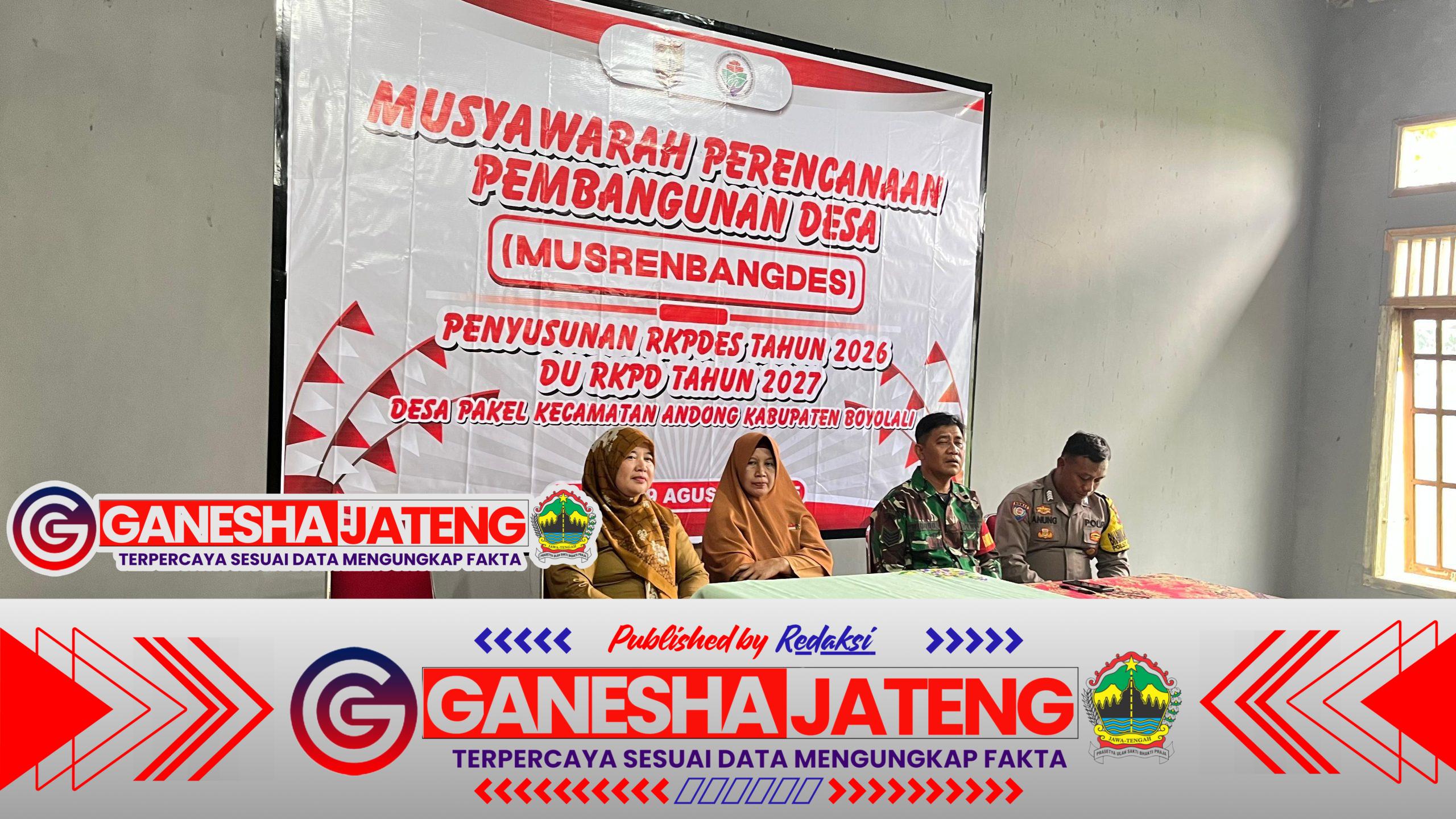 Boyolali – Musyawarah Perencanaan Pembangunan Desa (Musrenbangdes) Tahun 2027 Desa Pakel, Kecamatan Andong, Kabupaten Boyolali. Kegiatan tersebut dihadiri oleh berbagai unsur, mulai dari perangkat desa, tokoh masyarakat, hingga aparat TNI-Polri.Rabu (20/08/2025).