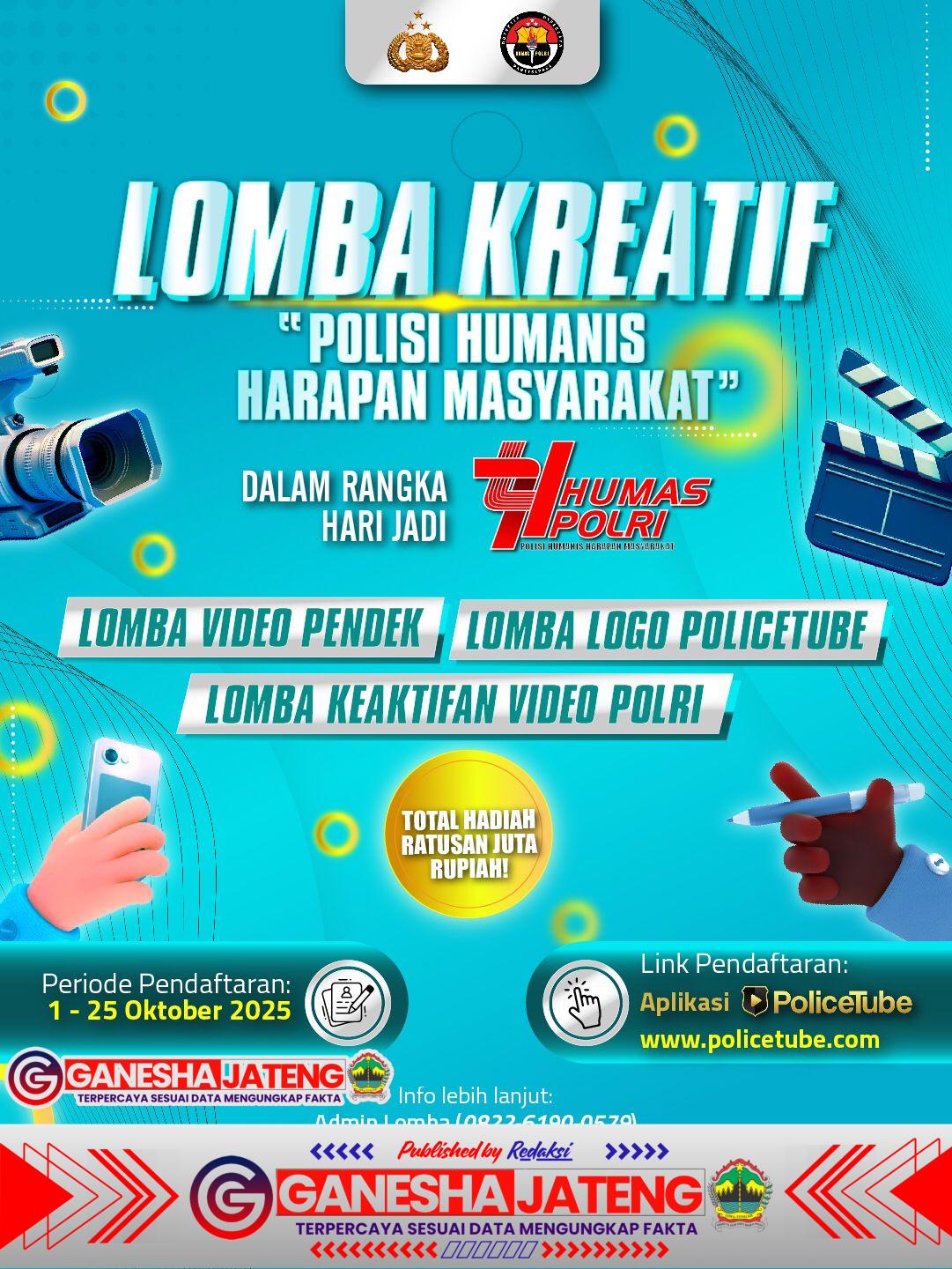 Polda Jateng, Kota Semarang Menyambut Hari Jadi ke-74 Humas Polri yang jatuh pada 30 Oktober 2025, Polda Jawa Tengah mengajak masyarakat luas, pelajar, mahasiswa, hingga insan pers di Jateng untuk berpartisipasi dalam rangkaian lomba kreatif yang digelar Divisi Humas Polri.