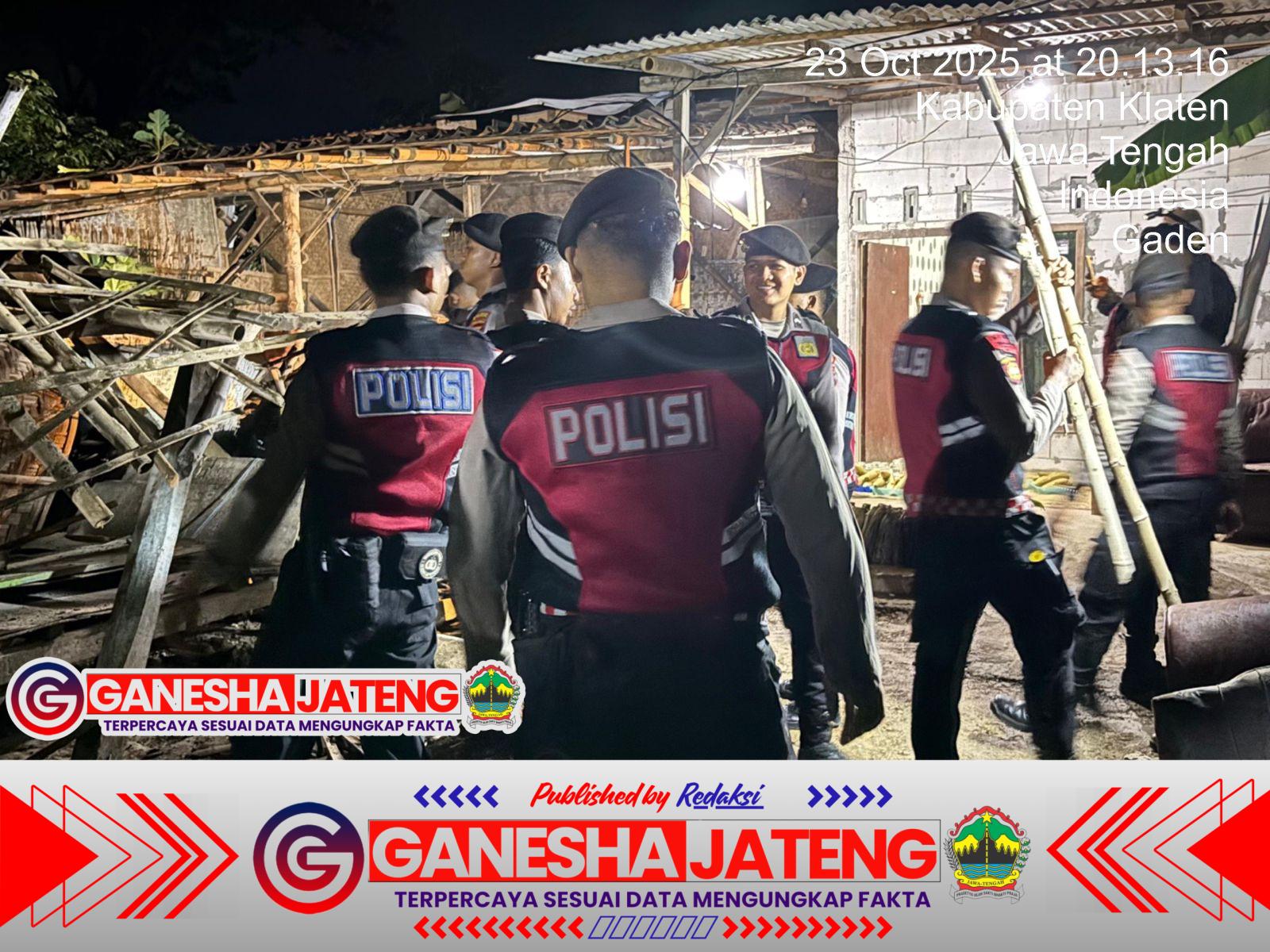 KLATEN – Jajaran Polres Klaten bersama unsur terkait bergerak cepat mengevakuasi rumah warga yang roboh di Dukuh Mardirejo RT 012 RW 003, Desa Kalikebo, Kecamatan Trucuk, Kabupaten Klaten, Kamis (23/10/2025) sekitar pukul 17.00 Wib.
