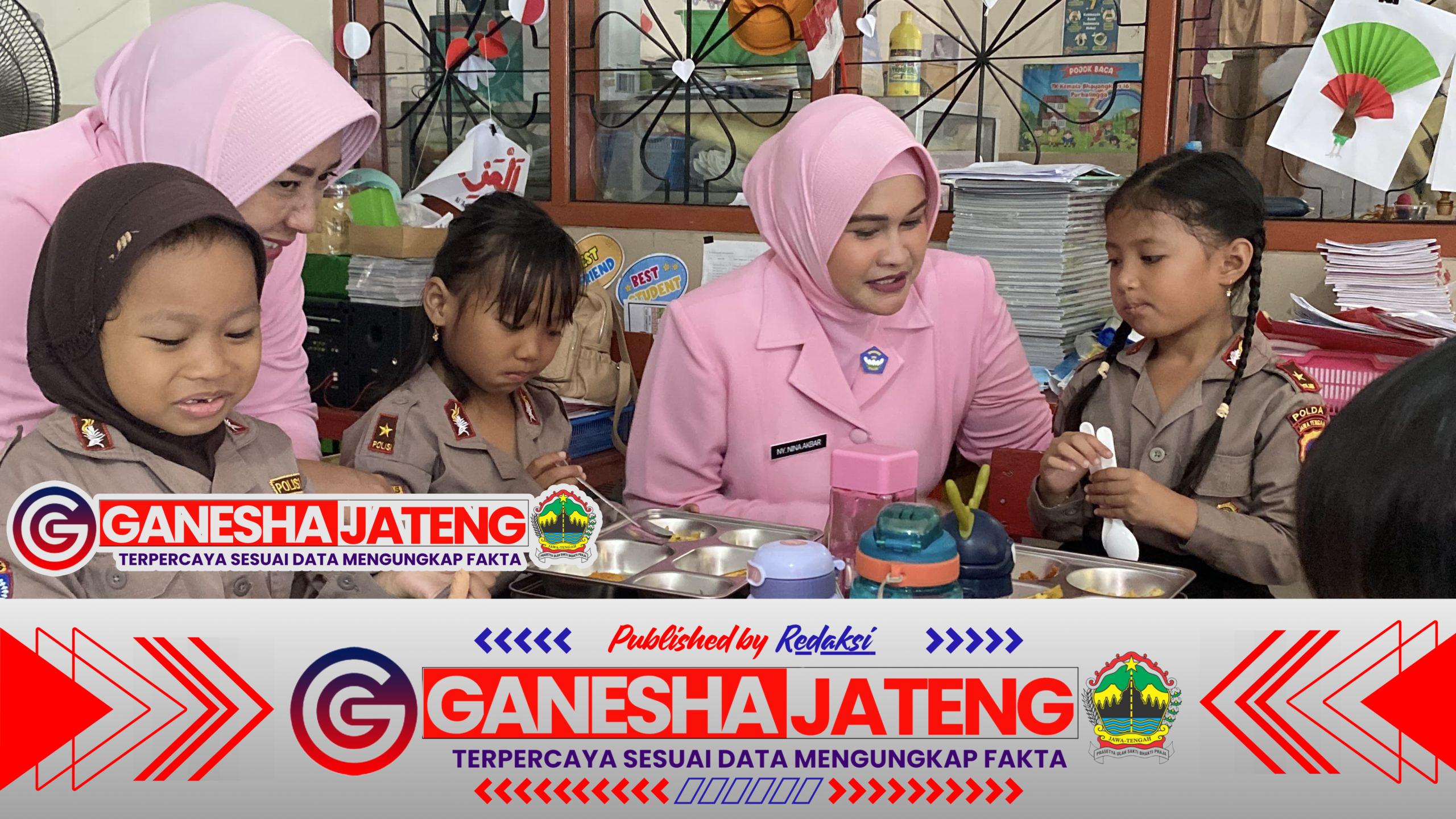 Kapolres Purbalingga AKBP Achmad Akbar didampingi Ketua Bhayangkari Cabang Purbalingga Nina Akbar memantau langsung proses pemeriksaan kesehatan pemakanan, pemorsian hingga pendistribusian MBG di TK Kemala Bhayangkari 16 Purbalingga.